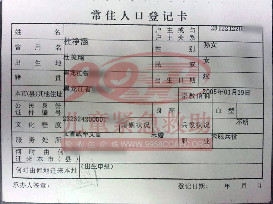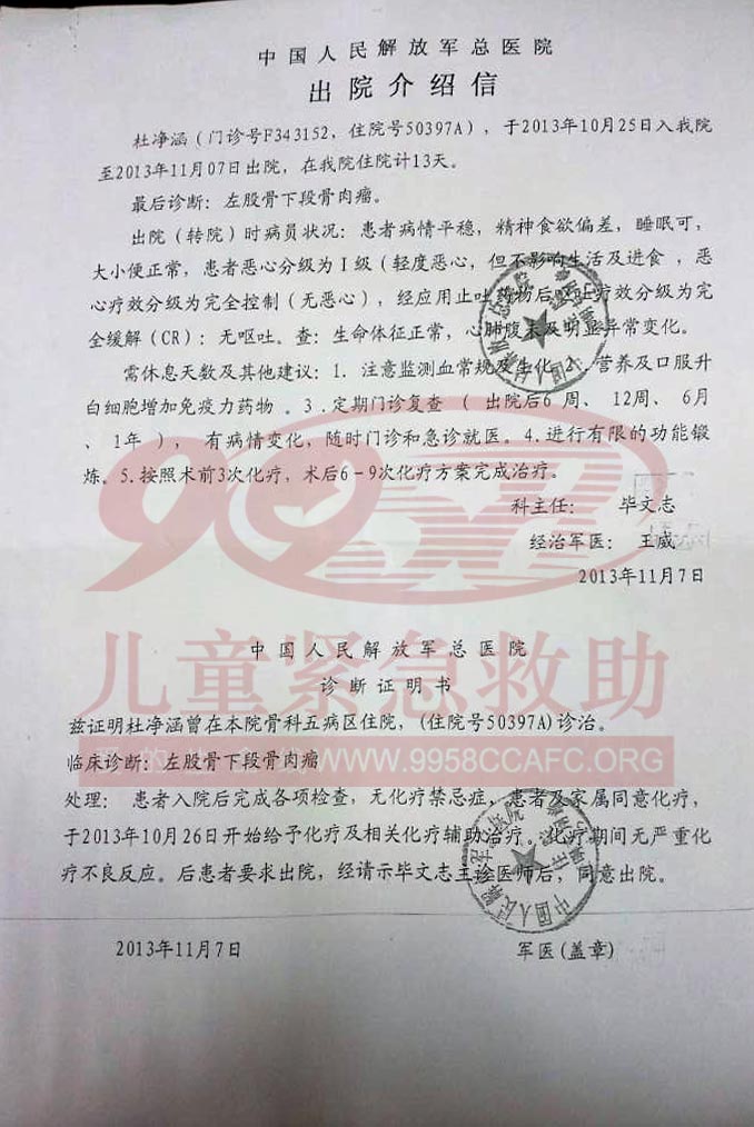 杜净涵,女,出生于2005129日,家在黑龙江,患骨肉瘤。