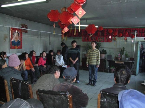 两位年轻的主持人首先祝福老年公寓的爷爷年年们新年快乐、健康长寿。随后,节目便一一开始演出!