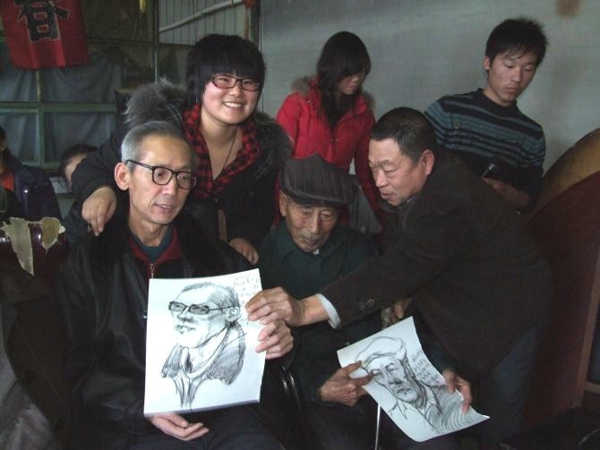 演出中,美术水平高的志愿者服务队队员,在为老人们现场画像!