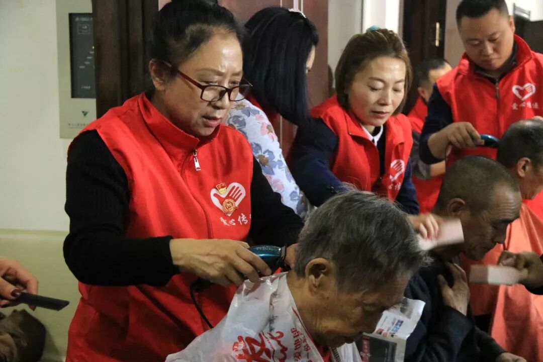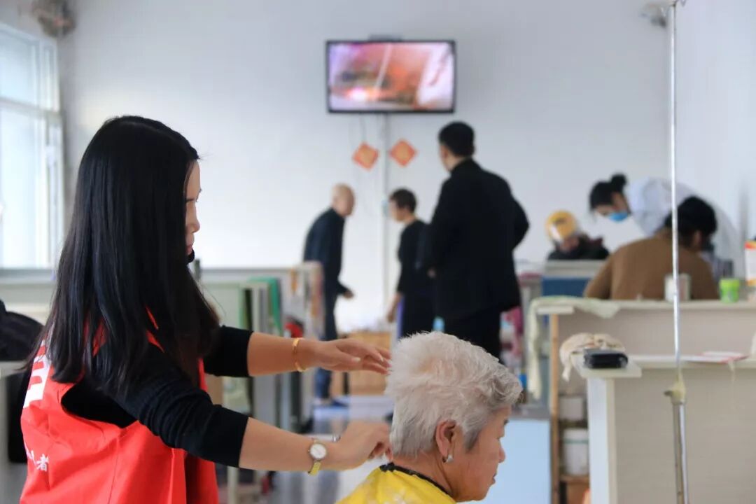 志愿者们理发技艺娴熟,深受老人好评。