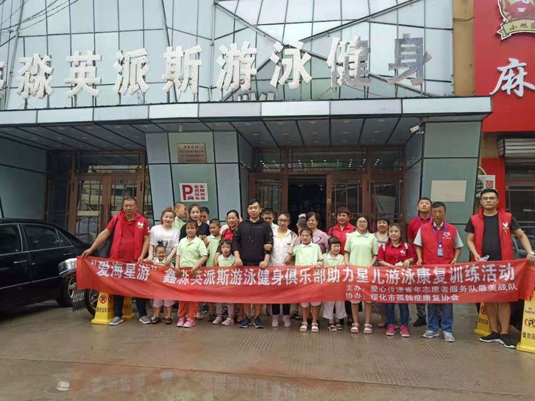 2019年7月26日,由绥化市爱心传递青年志愿者服务队主办,绥化市孤独症康复协会协办,绥化市英派斯游泳健身俱乐部承办的“爱海星游”自闭症儿童游泳康复训练活动2019年第二季启动。其目的为帮助自闭症儿童更好地进行肢体协调康复训练、更快地融入社会,让星儿们体验到健身和游泳的乐趣,感受到社会的温暖,使他们不再孤独。