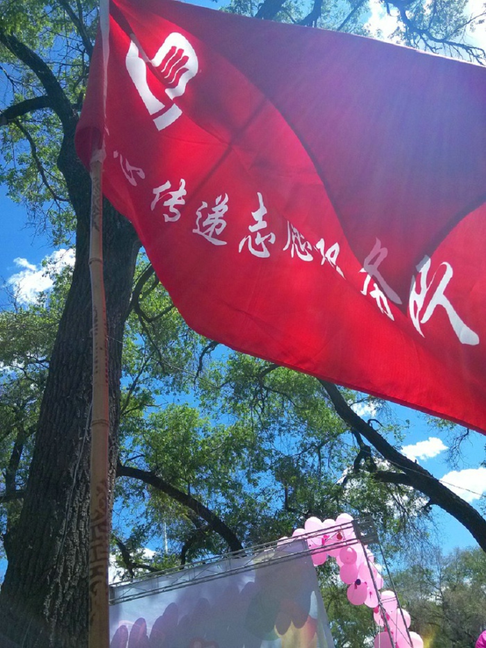 上午9点钟之前,爱心传递志愿者服务队的旗帜、小红帽、袖标,成为明显的标志,志愿者迅速集中到这里,登记、分派工作……