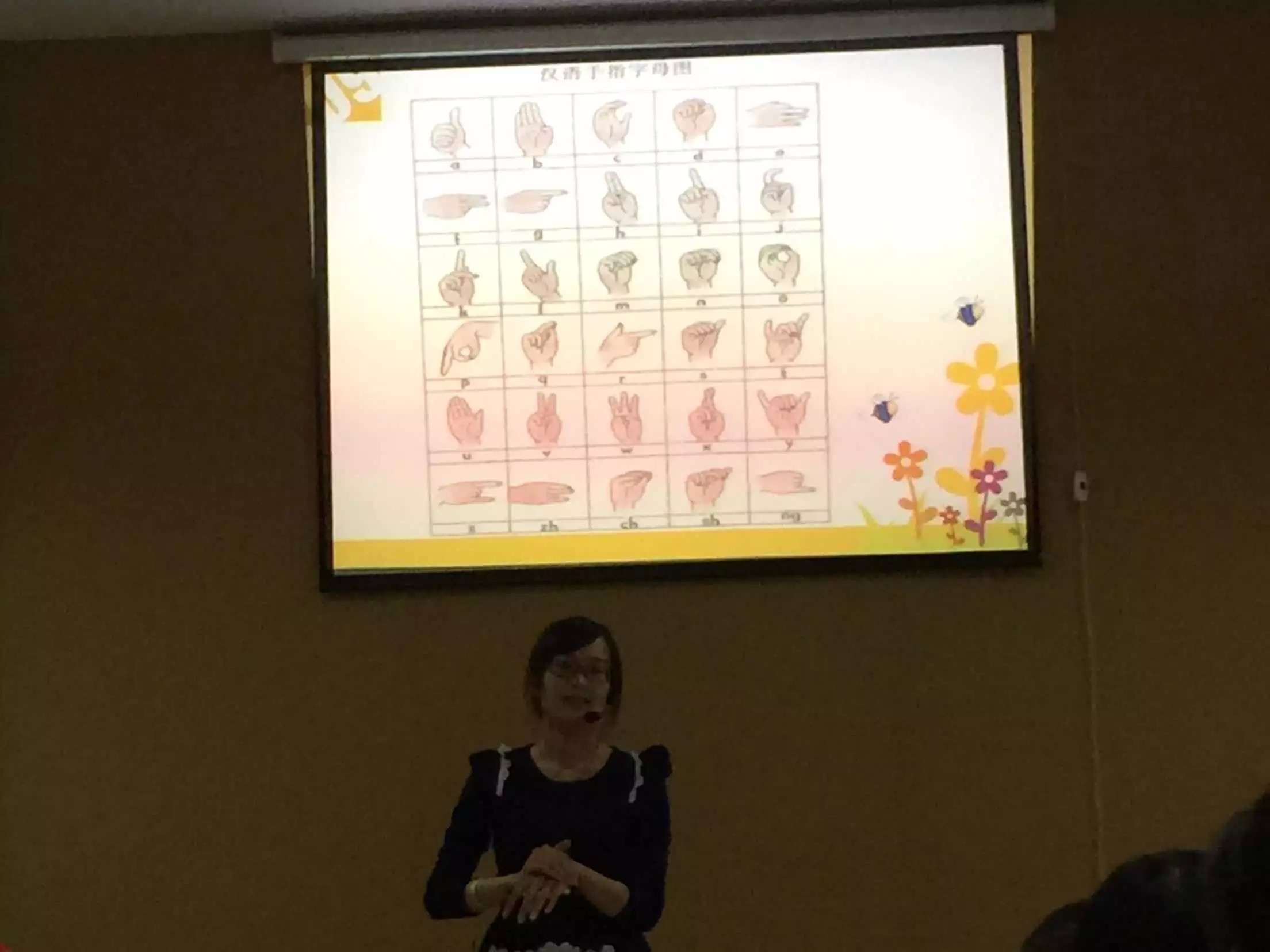 张百慧老师首先为大家进行了中国手语手指语的培训。手指语是用手指的指式变化和动作代表字母,并按照拼音顺序依次拼出词语;在远古时代,全人类都处在简单的有声语言阶段,常常用手做各种姿势来表示意思,这样的手势大多数是指示性和形象性的动作,叫作自然手势,此后,随着社会的进步,特别是聋教育的产生与发展,开始创造出具有语言性质的手势,这种在有声语言和文字基础上产生的,与有声语言密切结合的手语,称之为人为手势。自然手势和人为手势结合成为手势语。