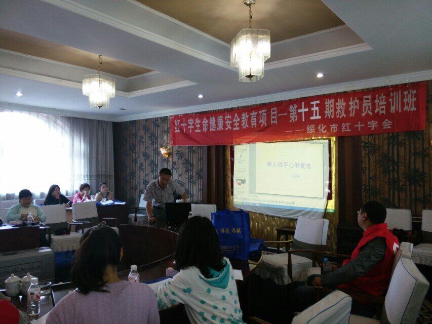 2015年9月19日绥化市爱心传递青年志愿者服务队与绥化市红十字会共同组织了第二批志愿者的救护员培训。在第一批救护员培训结束后,很多志愿者对培训表达了很大的兴趣,特此爱心传递志愿者服务队与市红十字会联系又组织了此次培训,并将培训内容制作成视频,供志愿者们查看回顾内容。并对培训合格的学员,发放绥化市红十字会救护员证。