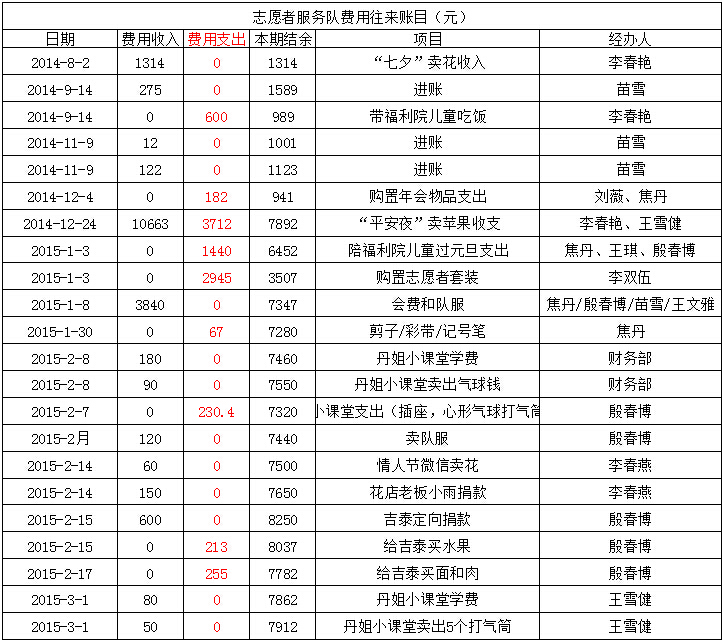 各活动的独立账目已经在活动信息中进行公示,请在相应活动中查看。如果有任何疑问可以联系财务部负责人:王雪健